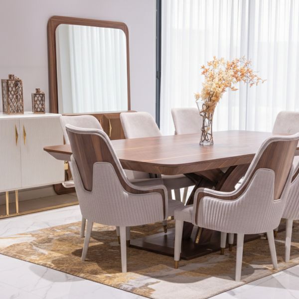 Dining Table + BUFFET/SERVER+ MIRR+ 8Dinidg Chair